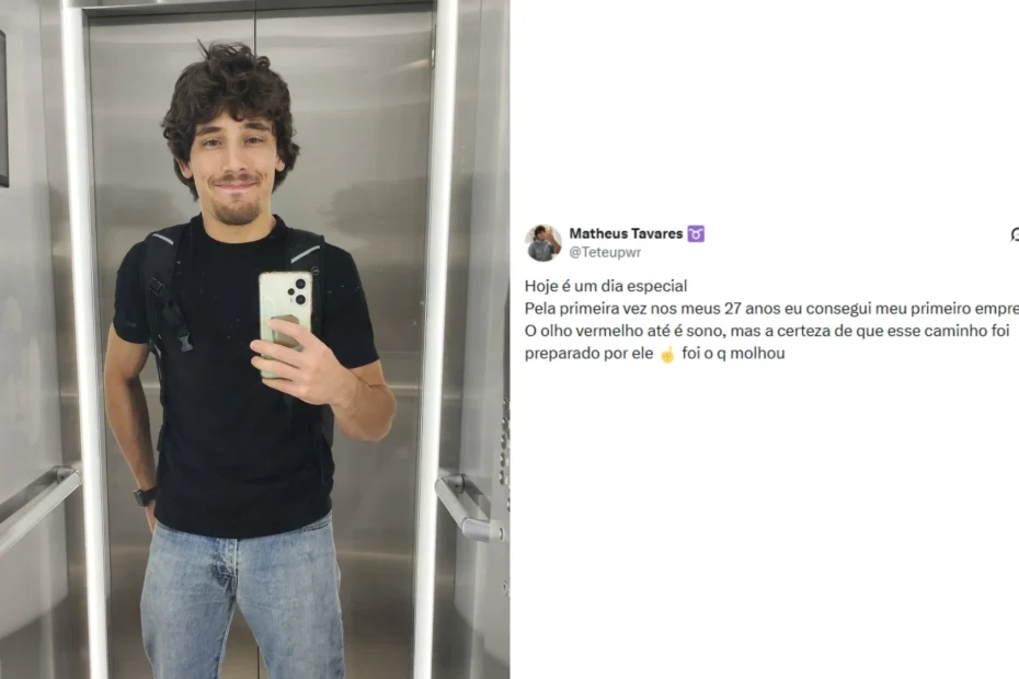 Aos 27 anos, Matheus Tavares chamou a atenção da internet ao compartilhar a notícia de que havia conquistado seu “primeiro emprego”. A frase, publicada em suas redes sociais, viralizou rapidamente, mas também gerou muitas discussões e críticas.