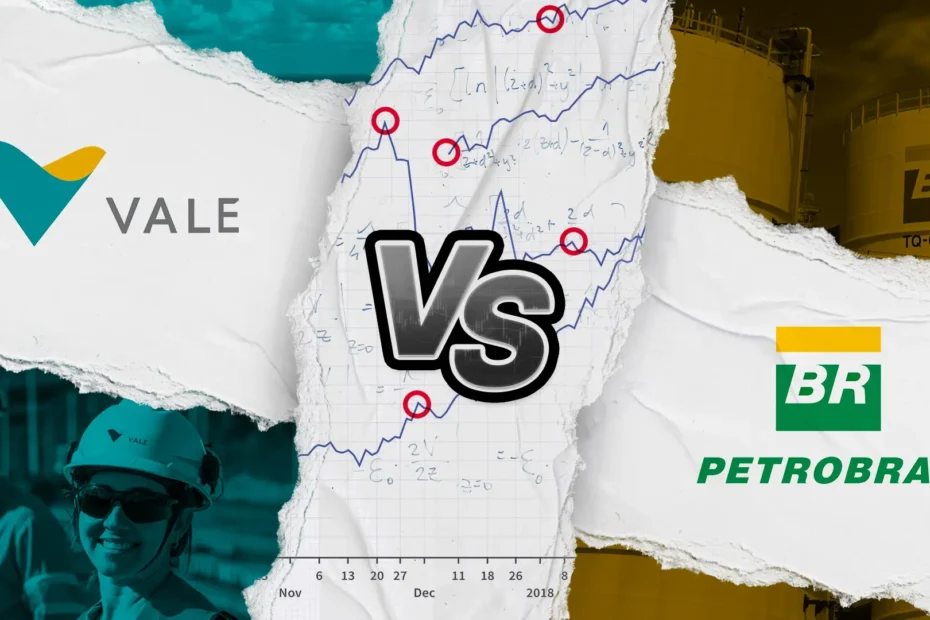 Petrobras sobe 9,38% no mês, tentando reverter a queda acumulada de 3,49% em 2025, enquanto a Vale já mostra forte valorização anual, com valorização de 27,66% no ano.
